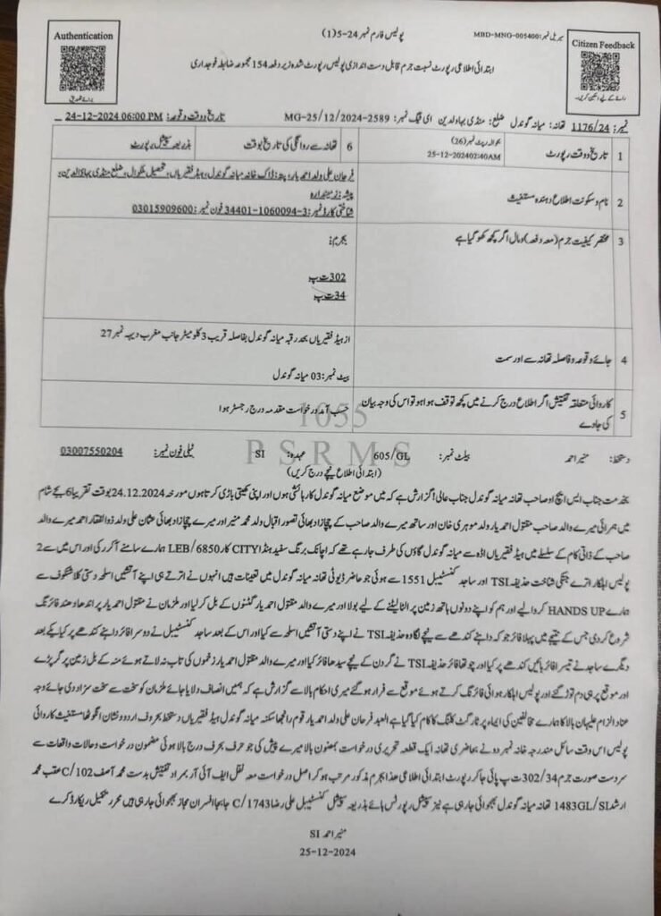 The recent killing of a citizen by police officers at Miana Gondal Police Station( FIR.1176/24 U/S 302, 34 PPC Police Station Miana Gondal Dist.M.B.Din.) Mandi Bahauddin is a grim reminder […]